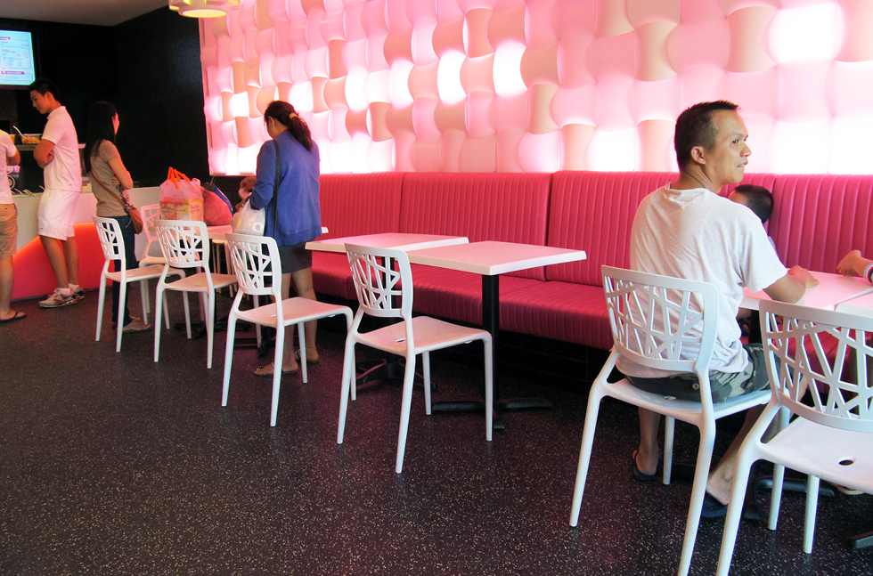 In preparation for the grand opening of its new Cabramatta store, Moochi was keen to deck out its new unit with a boldly coloured pink and black interior design scheme in line with the company's brand image.