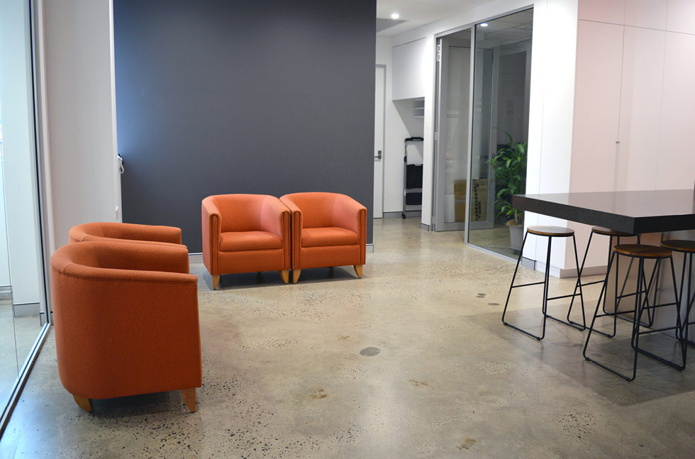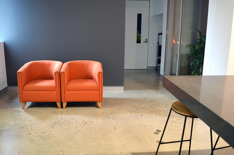 The offices and meeting spaces had a clear Flowseal Satin finish, providing a resilient platform underfoot whilst also promoting the contemporary urban aesthetic that Space Joinery strived for.