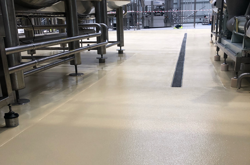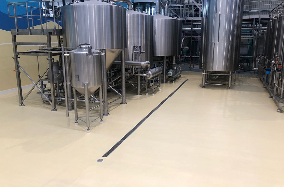As the brewing equipment was already installed, the challenge was to do the surface preparation and installation of the flooring system without removing the equipment which would shut down their operation and be extremely costly.