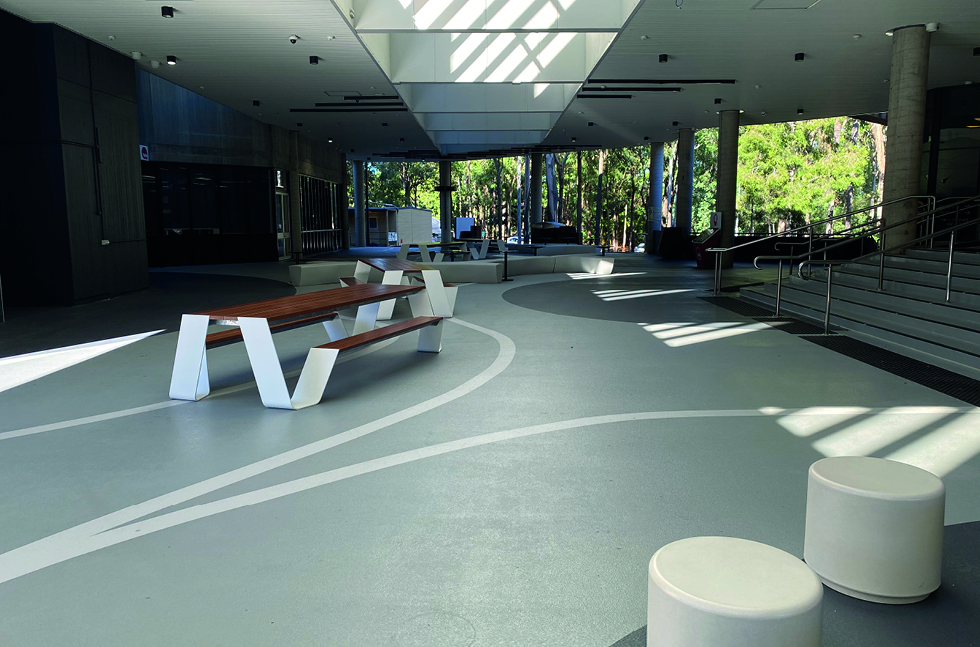 The project was completed in multiple stages by the applicator Multiblast Industrial Flooring over a 10-week period so that disruption was kept to a minimum - allowing the site to remain open to students and staff. The result fosters a creative community atmosphere.