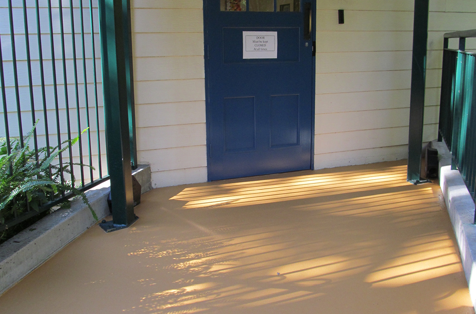 A custom coffee coloured blend of Deckshield ID, a solvent-free protective traffic coating was then installed with a slip resistance of 50BPM and above achieved. The Deckshield system looks attractive and delivers great slip resistance as well as providing a barrier to stop contaminants from entering the concrete surface and causing further steel corrosion leading to concrete spalling.