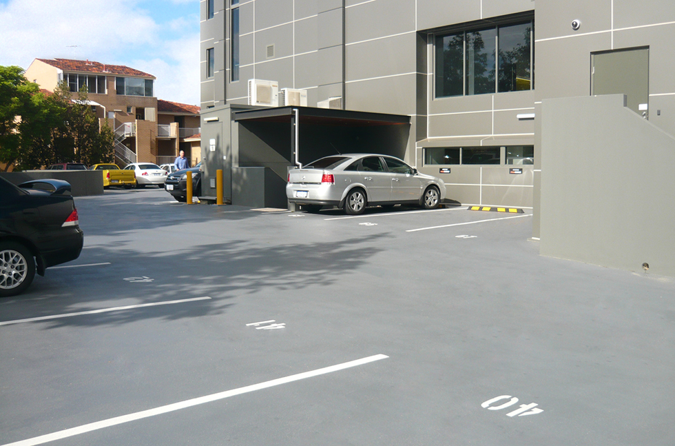 Part of this redevelopment was to renovate the external car park. The existing flooring was heavily stained from oil and dirt ingress, and the concrete was in need of repair, typical of an exposed, uncoated concrete deck.
