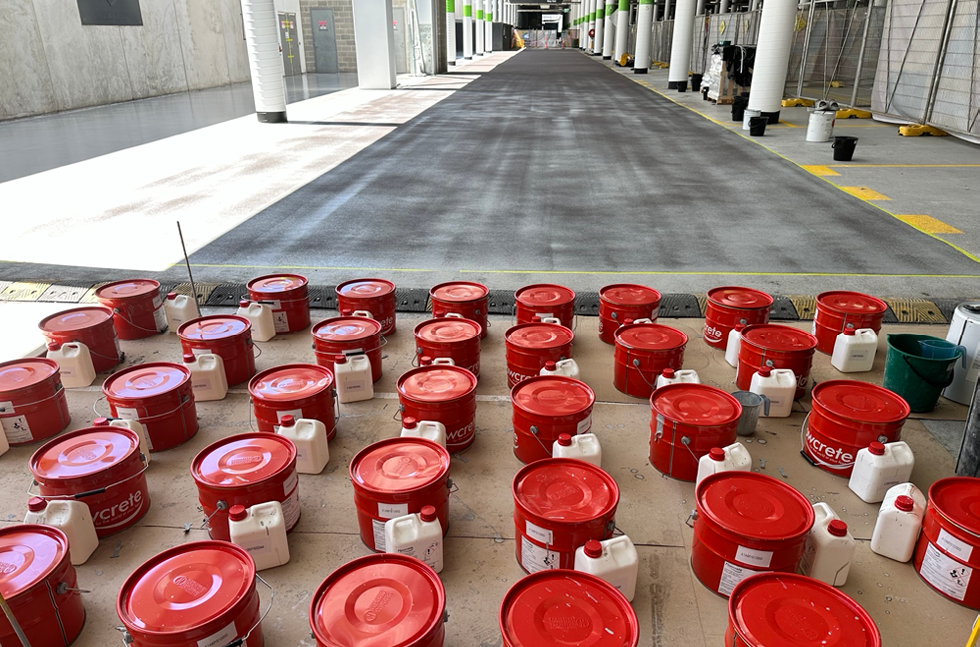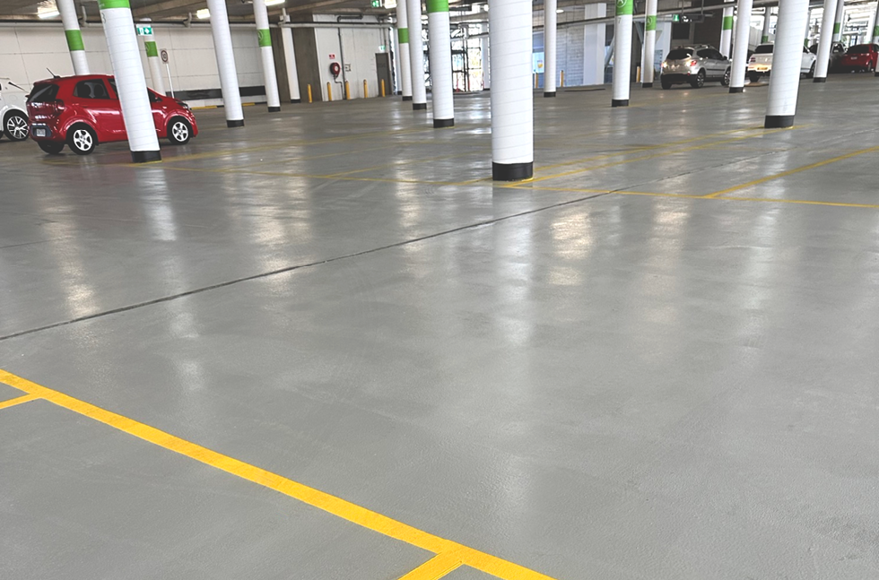 Kings Commercial was contracted to install the Deckshield ID system across the car park’s internal bays, driveways, and ramps, covering an area of 25,000m2. The installation, completed over four weeks, involved applying a grey Deckshield ID coating, known for its high durability and slip-resistant properties. The Deckshield system, a polyurethane-based floor coating, was chosen for its ability to withstand the high traffic load typical in a shopping center and its resistance to oil spills and wear from vehicles.