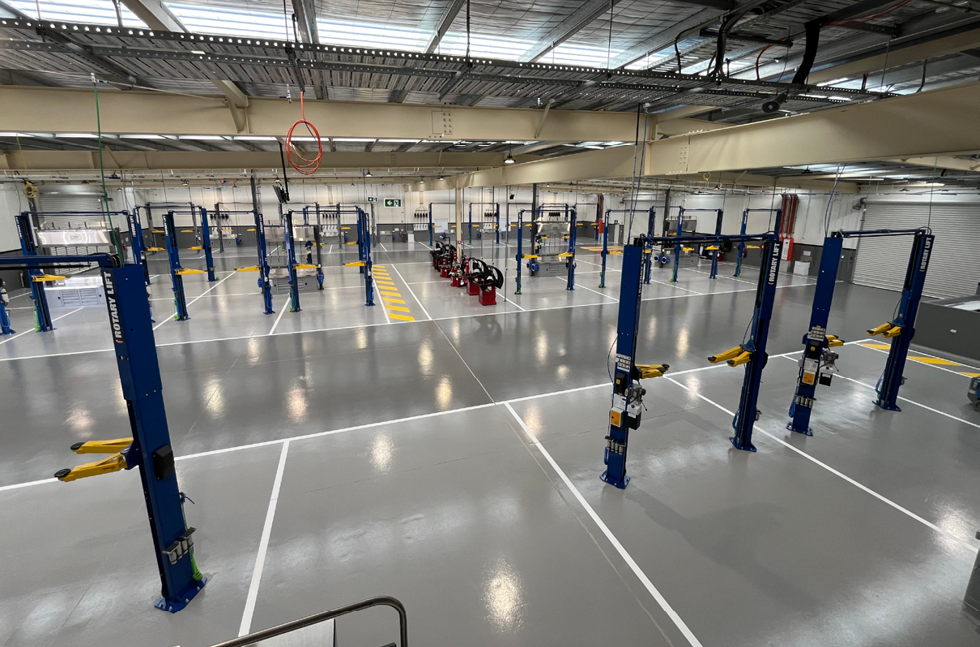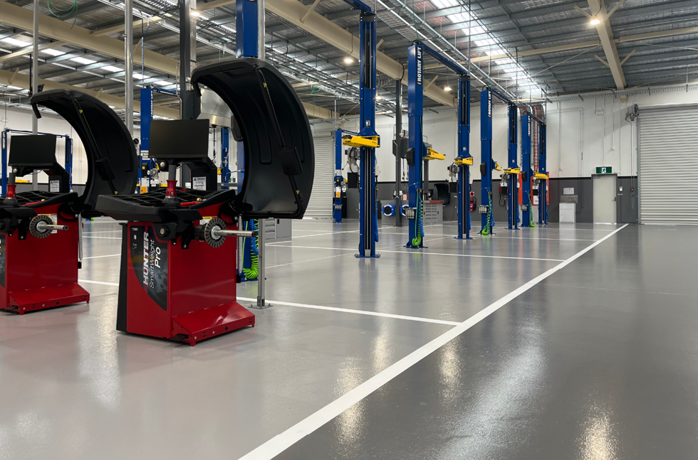 To optimise workflow and ensure compliance with safety standards, precise line marking was completed for pedestrian walkways, service bays, and safety zones using Deckshield UV Linemarker. The flooring system was customised to meet the client’s specific requirements while adhering to AS4586:2013 standards.