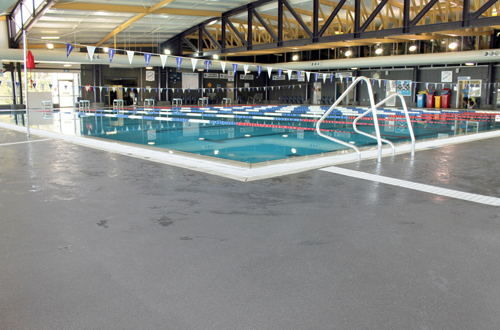 Flowsports ED’s flexible membrane was ideal for addressing the pool deck’s extensive cracking problem by creating a seamless, impervious and easy to clean new finish.