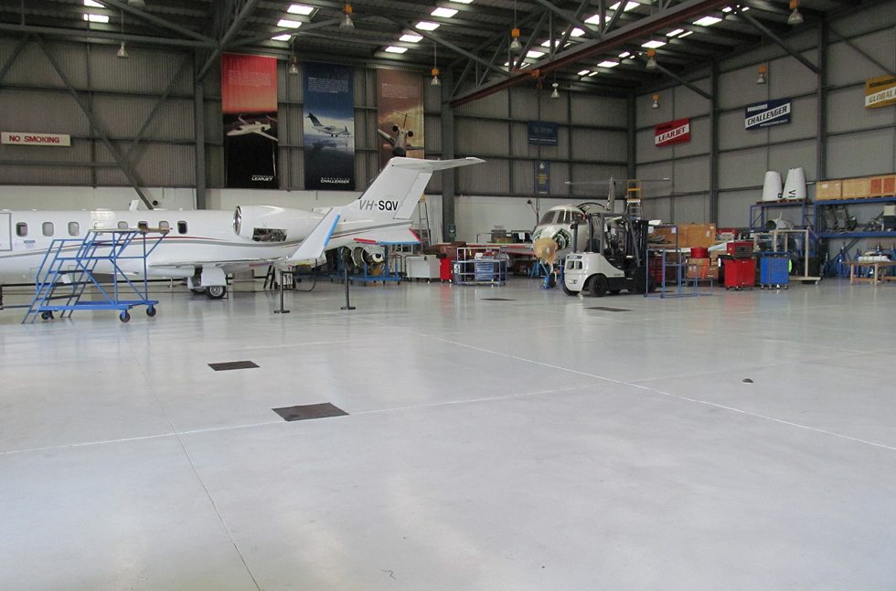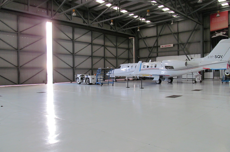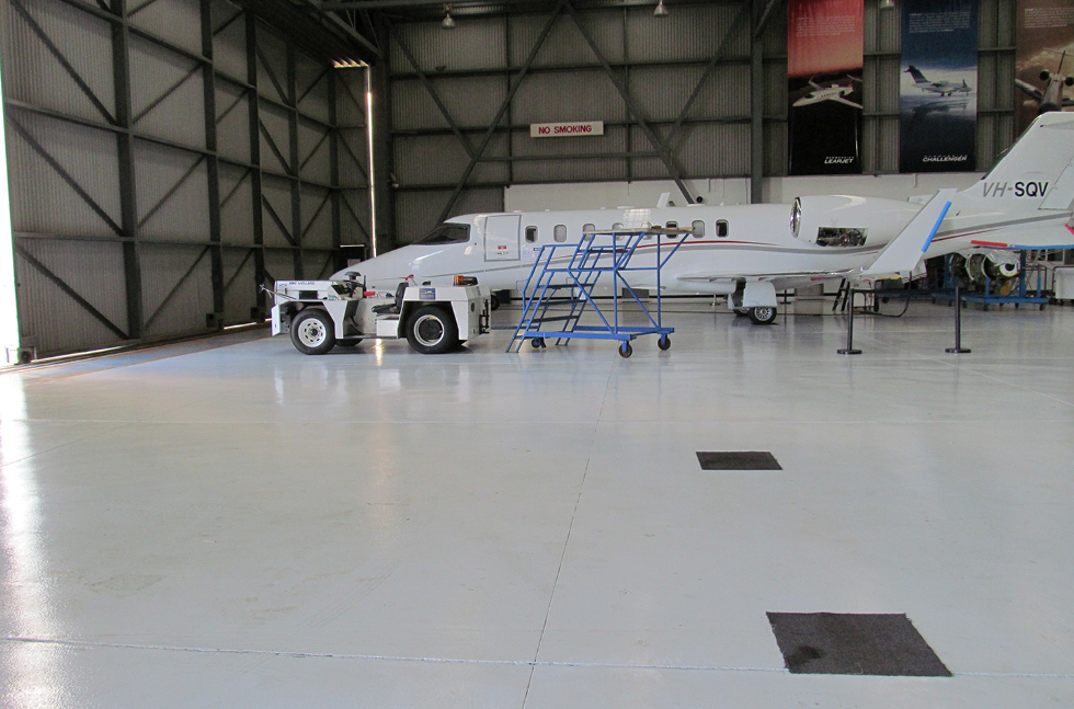 1,400 square metres of Flowseal UV - Flowcrete Australia's polyurethane resin coating material - have been installed across the hangar in a phased application project.