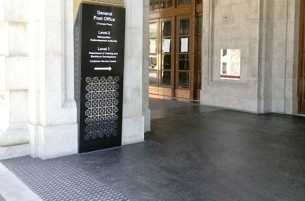 A black finish was chosen so that it would replicate the colour of the previous tile floor and complement the overall appearance of the visually striking, seven-storey building. Maintaining the well-known look of GPO Perth was critical, as it is widely regarded as a location that established the city’s aesthetic identity.