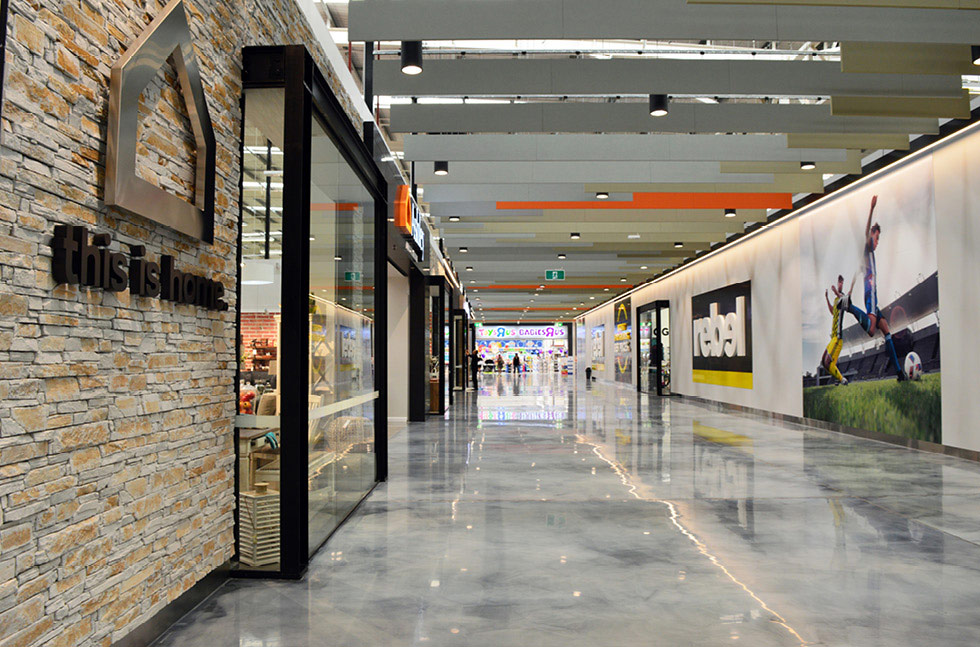 Each retail hub features a similar layout, allowing customers to visit the range of tenants with ease. Major sites feature concourse areas ranging from 800m2 to 1,600m2. The Metallic Expressions flooring system has so far been installed in the main walkways of centres across Australia by leading resin flooring applicators including Penrith, Marsden Park and Lismore in New South Wales, South Morang in Victoria by Ascoat Contracting and North Lakes, Morayfield, Tingalpa and Toowoomba in Queensland by Multiblast Industrial Flooring.