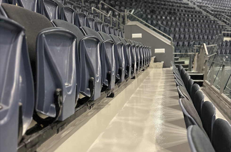 Flowcrete, in collaboration with Epoxy Flooring Ltd, recommended Flowcoat OP – a high-performance epoxy coating system designed for industrial and public use environments. Known for its excellent wear resistance and easy-clean properties, Flowcoat OP was the ideal solution to revitalise the bleachers while ensuring long-term performance. The system was installed in a neutral tone to provide a clean, uniform look across the seating area. Its seamless, non-porous finish helps prevent staining from spills and simplifies routine maintenance, an essential feature in a venue with fast turnaround times between events.