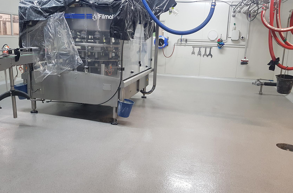 With these factors of moisture and time, the Flowcrete team along with Concrete Specialist agreed that only a Flowfast system using the time saving, fast curing properties of methyl methacrylate (MMA) resin would allow this project to have any chance of success. Flowfast SRQ was chosen, as the quartz would also provide a safe, non-slip surface for the team at Fresha Valley working in the wet floored environment of bottling room.
