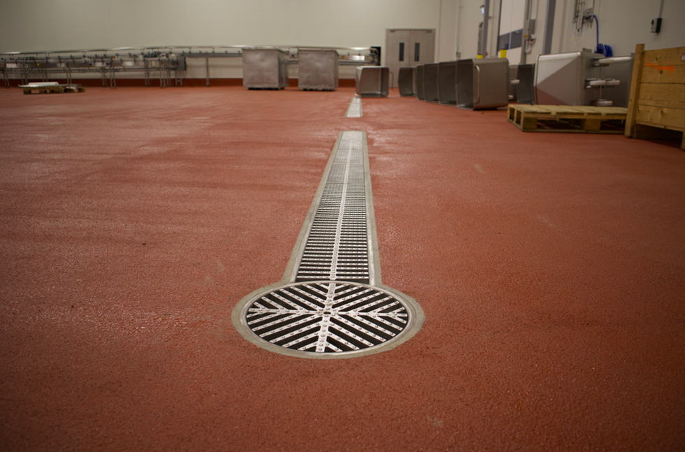 To address these complex requirements, a dual-system approach was specified to cater to different functional areas. For the 3,300 m² main processing and production zones, Flowfresh SR at a 6 mm thickness was selected. This system is renowned for its performance in meat processing environments, offering superior resistance to moisture and chemicals while providing a seamless, non-porous finish essential for hygiene compliance. In contrast, the non-processing areas, covering 700 m² of changing rooms, offices, and labs, were fitted with Terrosso flooring. This choice provided a durable, easy-to-clean surface with an enhanced aesthetic better suited for staff environments.